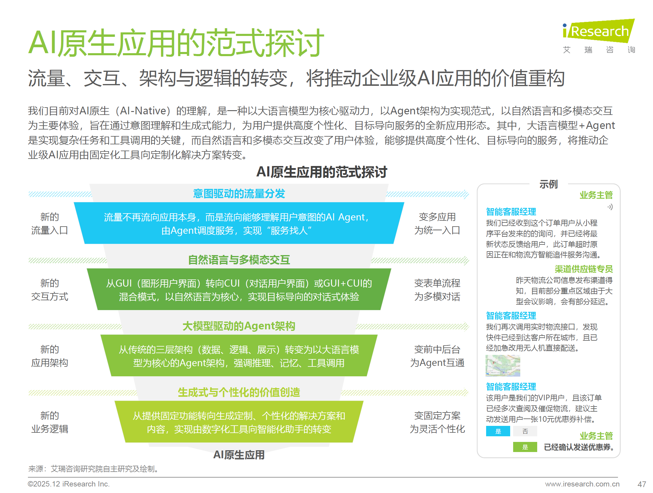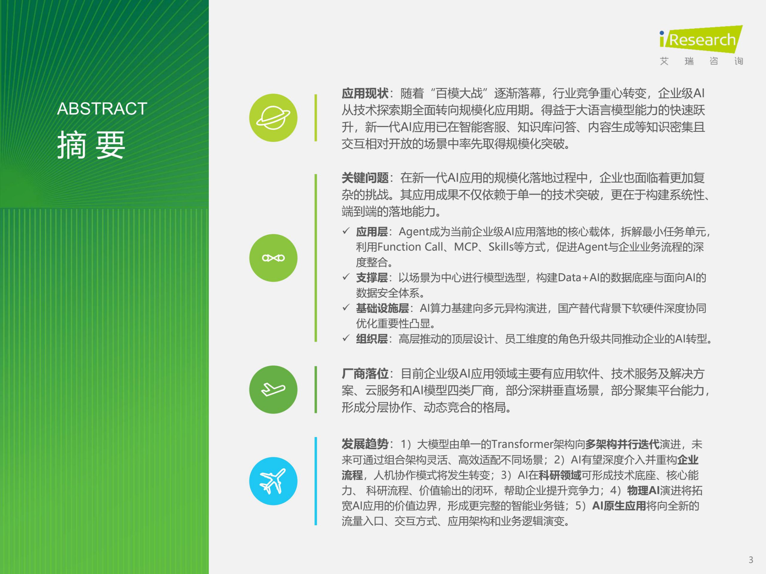 - 范式转移: AI应用正从以LLM为核心的“生成式AI”,向以Agent(智能体)为核心的“自主决策AI”跃迁。